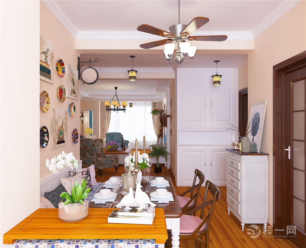 商品房的淨高一般在2.5-2.8米之間,為避免室內不壓抑,房間會頂部簡單處理,牆面也簡單裝飾,這樣不僅可節省費用,裝飾效果也一樣不差。而地面可多下功夫,因地面使用頻率最高,所以選用的材料質量、裝飾效果都可選高檔些的。