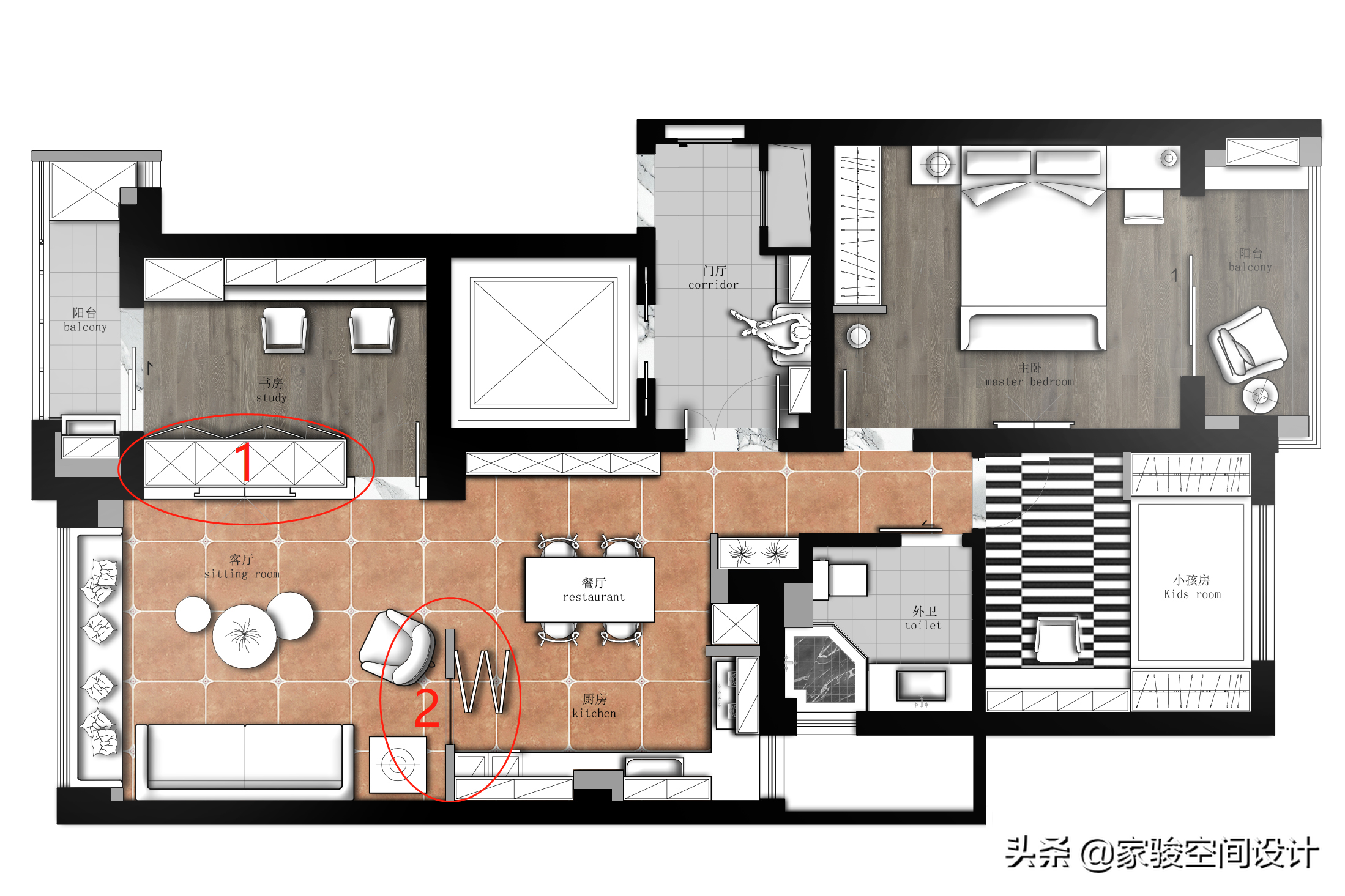 2. 屋主想要一個開放式廚房。