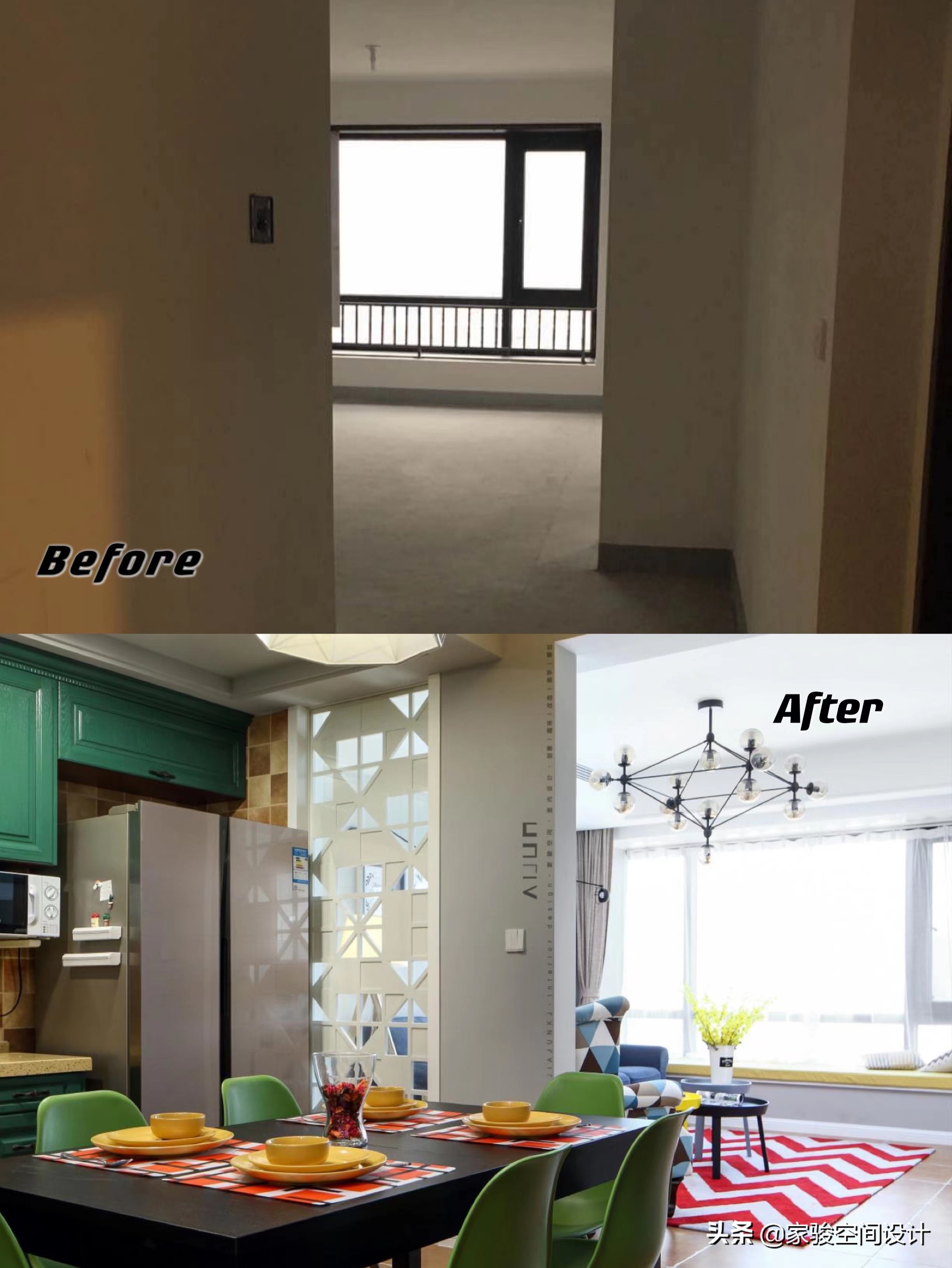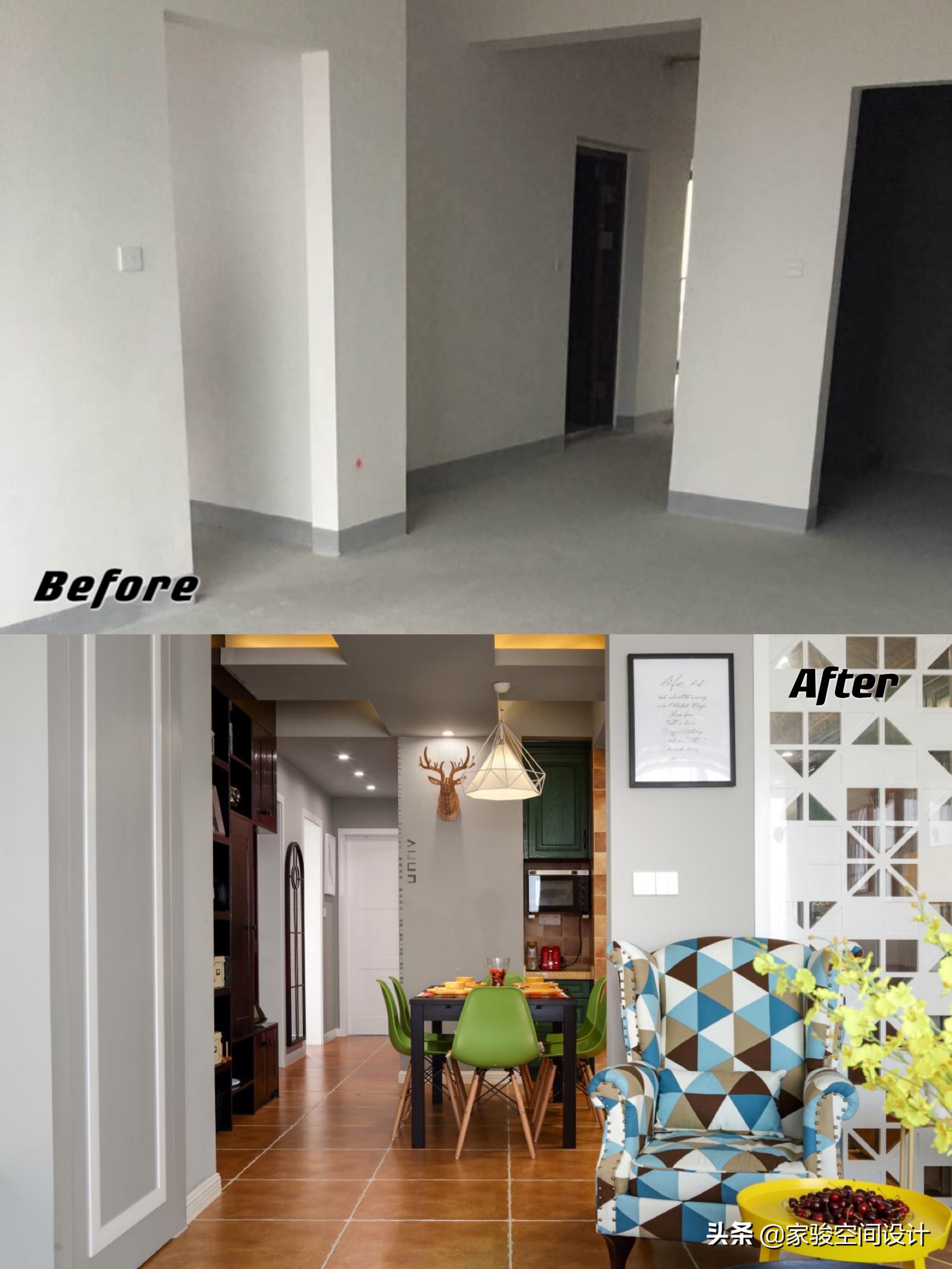 裝潢前後對比圖。空間通透性完全不一樣了。
