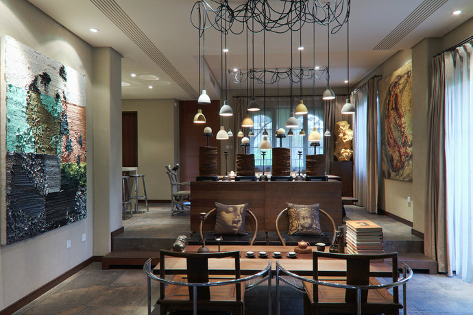 裝飾tips:客廳臨時搭建的閱讀區,靈活搭配的台燈和落地燈是不錯的選擇。家中如果是暗色系的牆面,可以選用分散的頂燈豐富視覺效果。