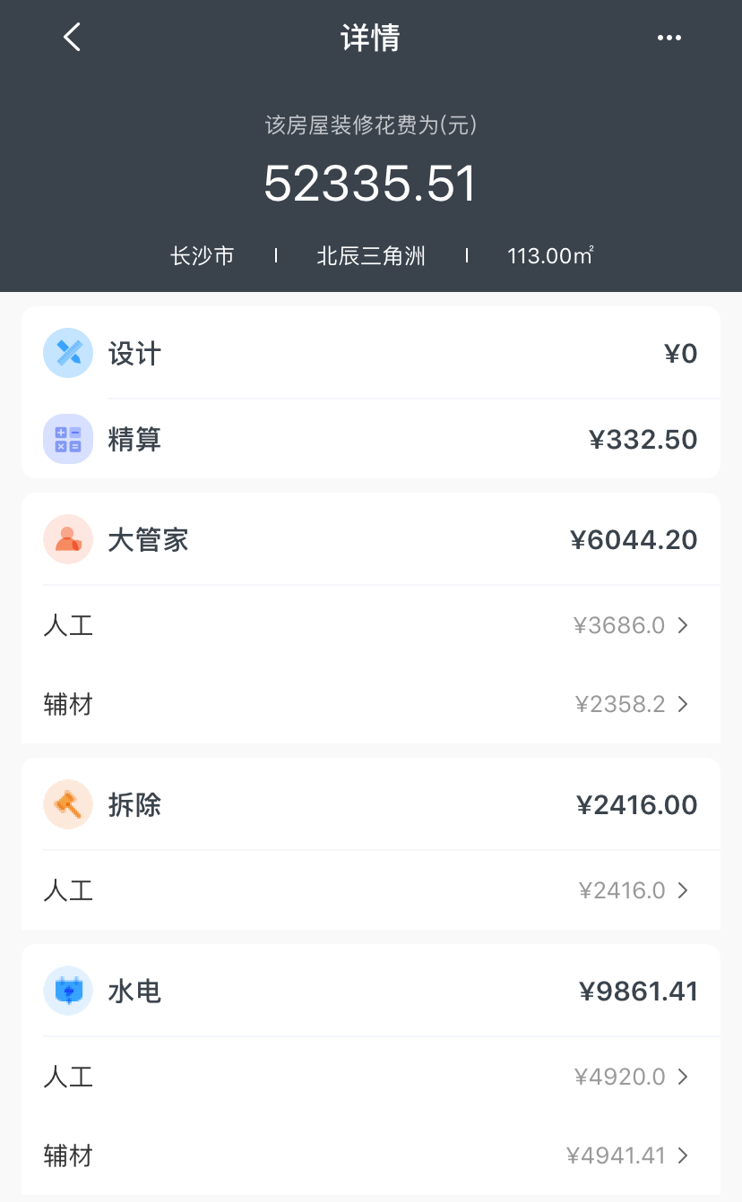 ③報價出來之後可參考當家裝潢APP內相同面積的業主的真實花費,看看別人的施工項以及價格,避免被坑
