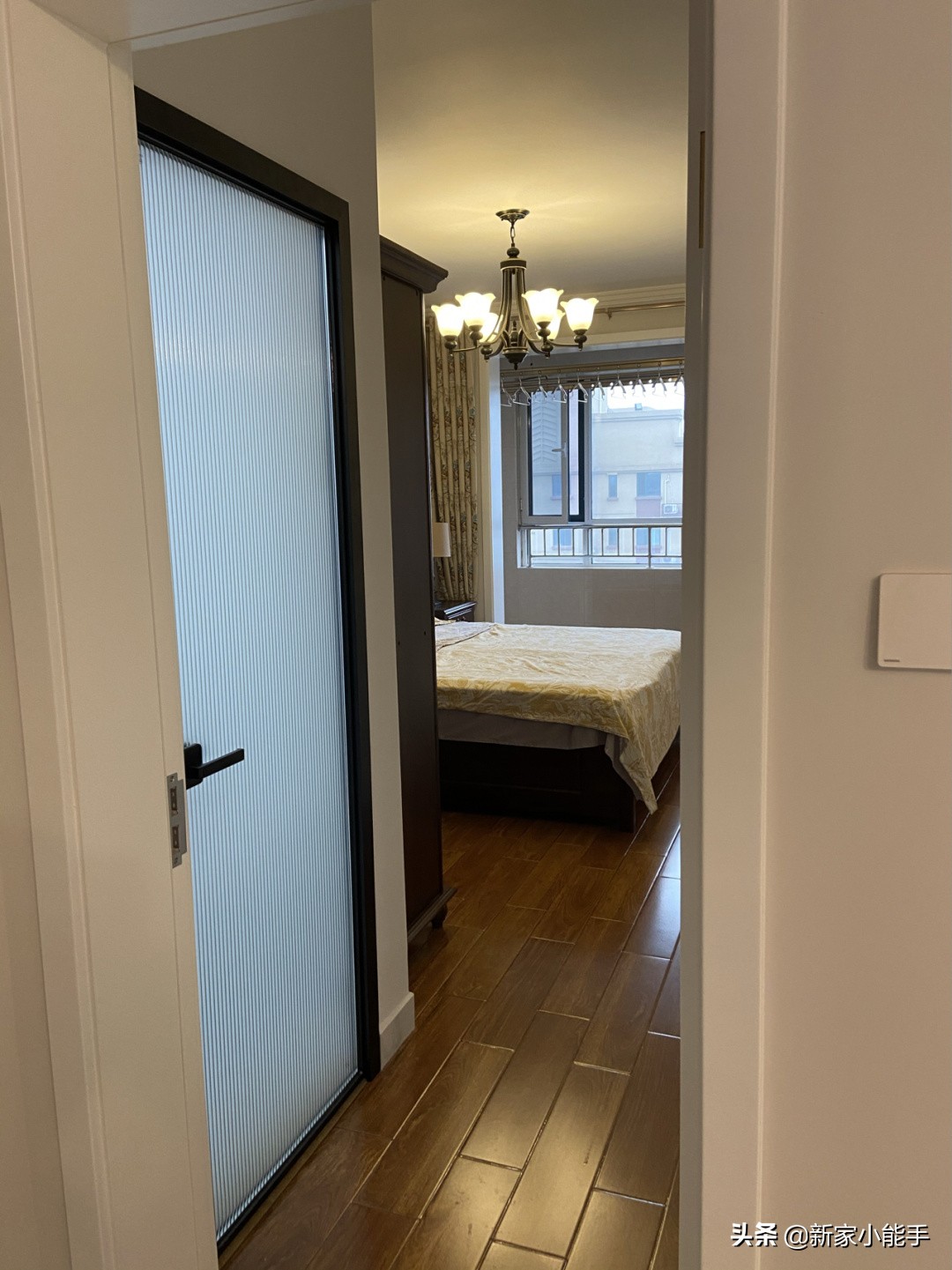 主臥空間稍微比其他房間要寬敞一些,擁有獨立的廁所,可以看到廁所安裝了長虹玻璃門,顏值很高,識別度很強啊。擁有獨立的廁所,使用都會方便很多。
