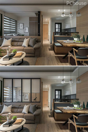 【太平洋家居網 設計頻道】本案屋主是一對30出頭的公務員夫婦,育有兩名幼子,希望馥築時尚設計在此24坪公寓營造樸實簡約的自然好感。 透過湯鎮安設計師的悉心觀察,本案場先天格局方正、采光良好,為擴大空間坪效,與方便家長照顧幼童,在公共區域規劃具視覺穿透力的開放式客餐廳與廚房。多功能房與客廳中介設置大面積鋁框玻璃折門,附加的卷簾能靈活控制隱私度,可作為書房、客房,或未來的孩子房使用。從玄關入門後,左右面皆有櫃體滿足客廳與廚房的收納需求。用餐區與廚房之間設置灰玻璃中介,既是過渡至中島吧台上台面,也是臥櫃椅的椅背,能有效節省坪效。(幸福空間供稿)