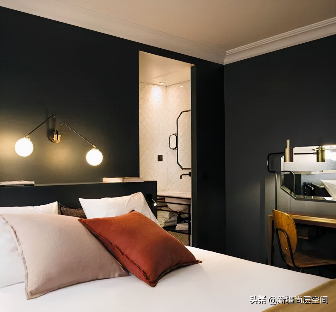 要是家里采光不好,要麼加燈之後用深色,要麼就是白色打底,然後家具或一兩面牆挑深色