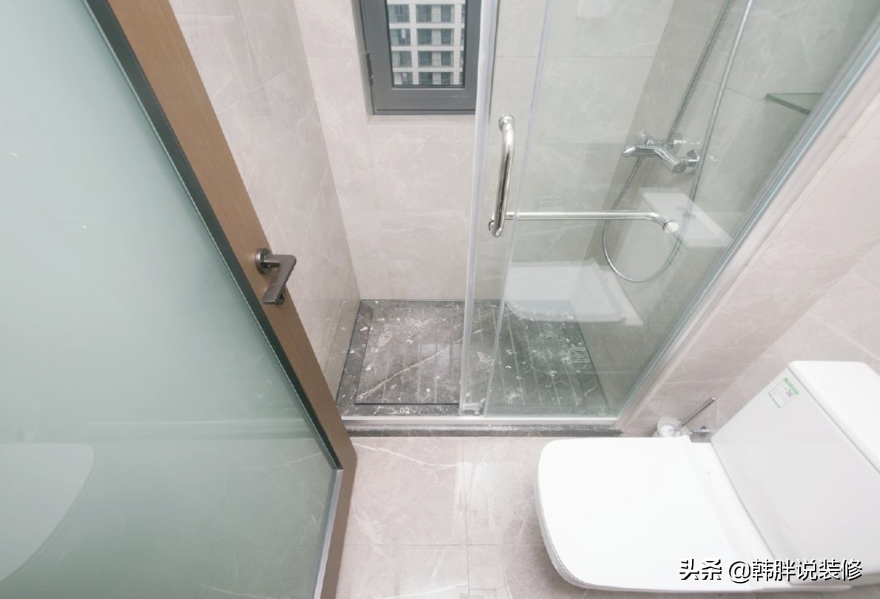 最後我們來看看客衛,雖然空間也有點緊湊,但是它有一個設計了幹濕分離的淋浴區。客衛和主衛的裝潢設計差不多,一樣的乾淨清爽,讓人看著感覺很舒服。